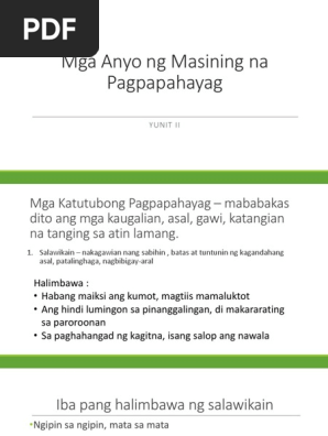 Pansining sinabi ni Jesus na narinig ninyo. Mayroong pangamba B. Hamak mang basahan may panahong kailangan.
